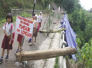 “Memang tidak ada hujan. Tapi tanahnya menjadi labil karena ada rembesan air. Selain itu,akhir-akhir ini curah hujan di Garut memang tinggi.Apalagi, berdasarkan pengamatan sementara, tepat di atas jalan itu terdapat sawah.Airnya kemudian masuk ke bawah tanah jalan. Kami sudah berkoordinasi dengan instansi terkait. Dalam waktu dekat, masalah ancaman longsor itu akan diatasi,”katanya.