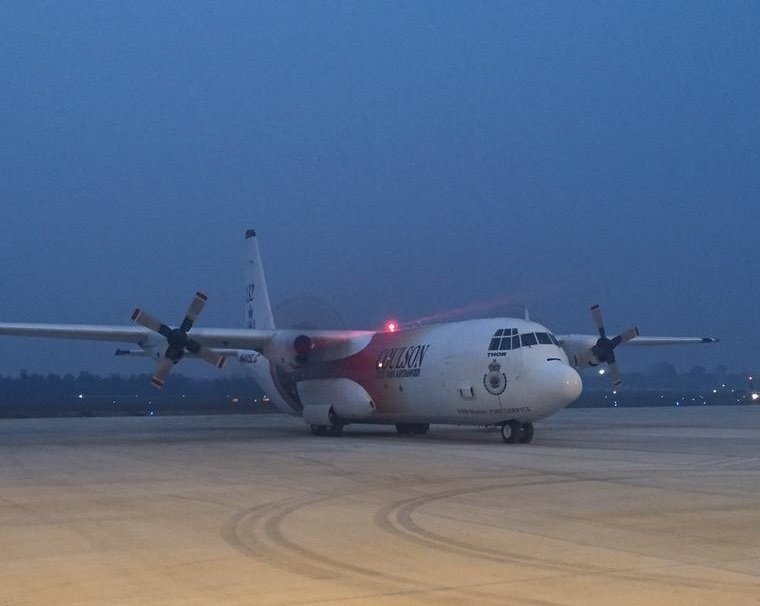 Tiba di Palembang pada Rabu (14/10/2015), dua pesawat jenis Tanker Air Lockheed L100 atau Thor dikirim Australia untuk membantu memadamkan sejumlah titik api di provinsi seluas 91.500 km persegi ini. Pada hari yang sama, pesawat pemadam itu langsung dioperasikan.