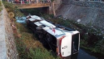 Tepat di jalur lingkar selatan Kota Probolinggo, bus yang dikemudikan melaju zig zag dan akhirnya bus menabrak pembatas jalan dan langsung terjun ke sungai.