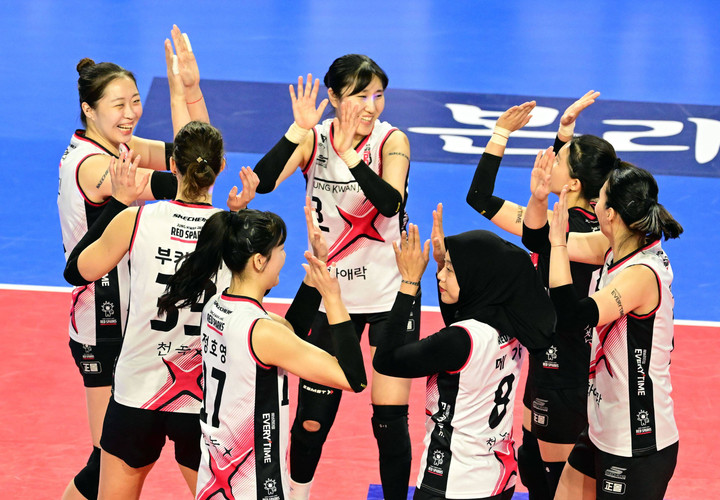 Dari Megawati. Sebaliknya, pertahanan Red Sparks beberapa kali mengizinkan celah yang dieksploitasi oleh Pink Spiders. Skor akhir giliran pertama adalah 21-25.