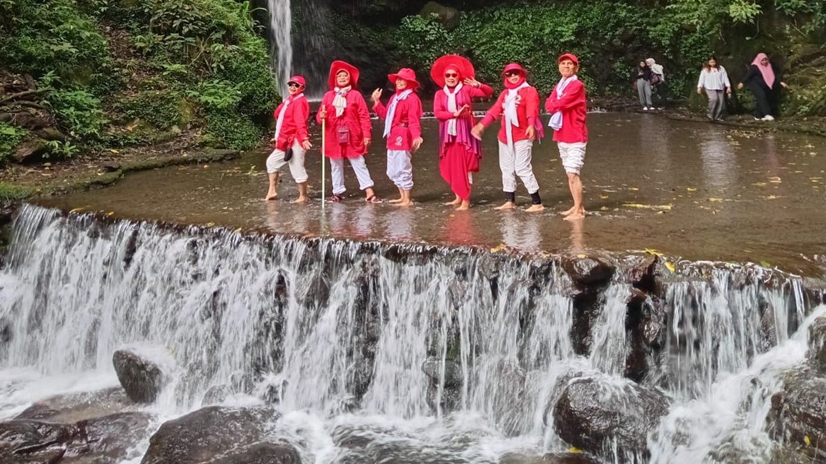 Termasuk anggota Komunitas Happy Vibe Squad (HVS) Bandung, mereka sangat antusias mengunjungi Curug Putri, Rabu 13 Agustus 2025.