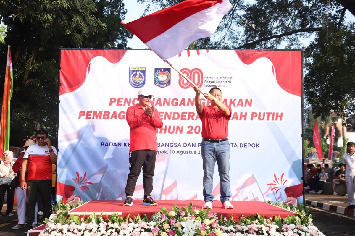 Bendera tersebut langsung dibagikan oleh Bahtiar Baharuddin, Wali Kota Depok, Ketua DPRD Depok serta Forkomimda setempat. Sebelumnya telah dilaksanakan pencanangan pembagian bendera merah putih di halaman alun-alun kantor Wali Kota Depok.