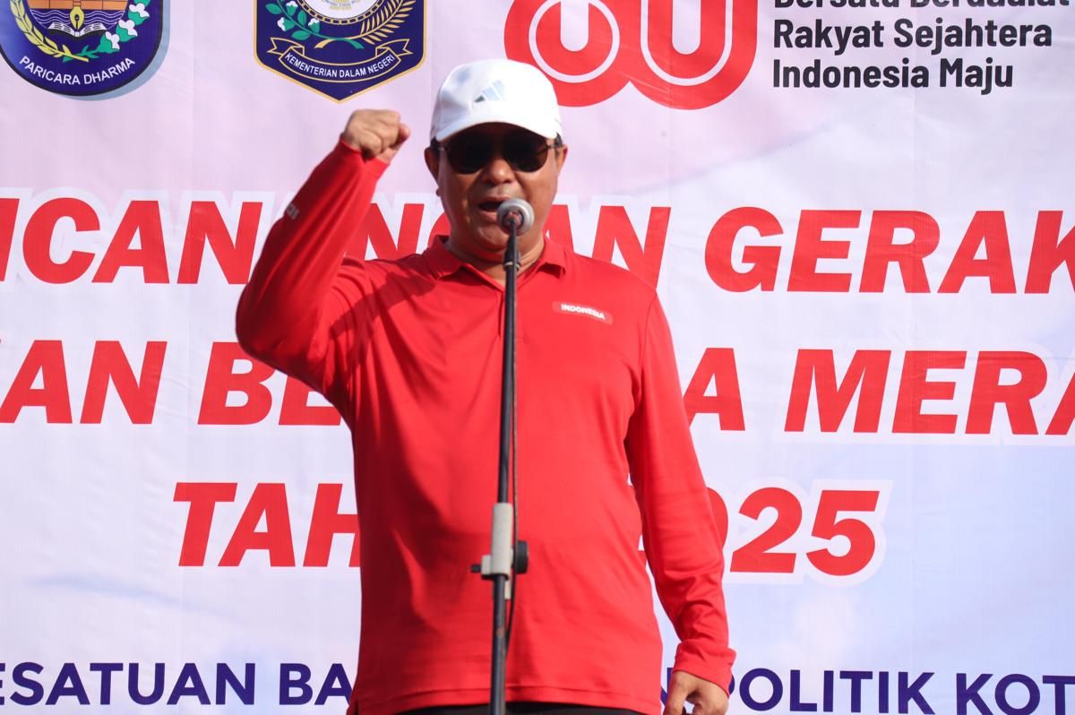 JABARMEDIA – Direktur Jenderal Politik dan Pemerintahan Umum (Polpum) Kementerian Dalam Negeri Bahtiar Baharuddin, menyebarkan ribuan bendera merah putih dalam acara Kirab Merah Putih yang diadakan di Kota Depok, Minggu (10/8/2025).