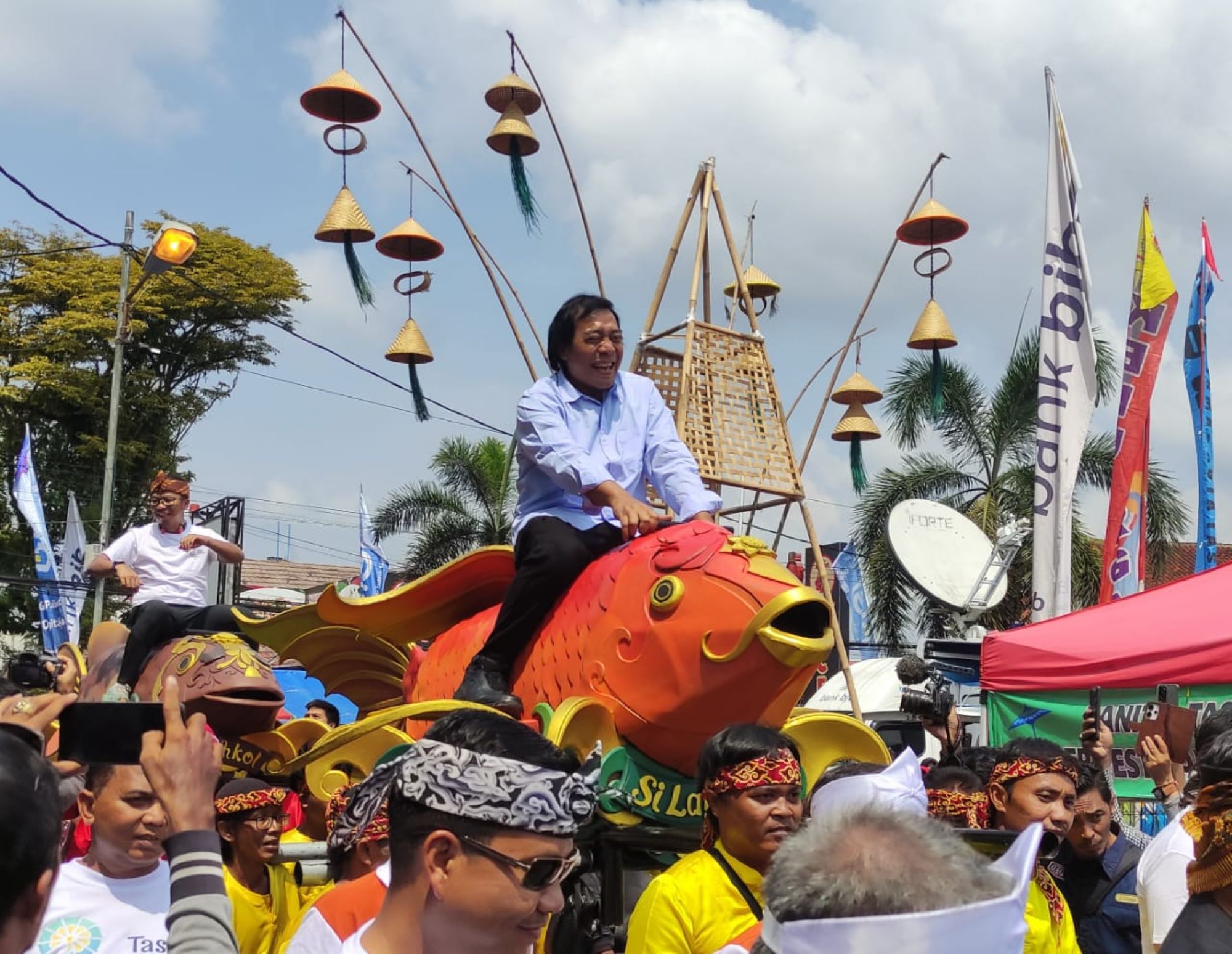 Komeng dibawa menggunakan tandu khas Si Layung, berdampingan dengan Wali Kota Tasikmalaya, Viman Alfarizi yang mengendarai tandu Si Kohkol. Sementara Wakil Wali Kota Rd Dicky Chandra berjalan di depan.