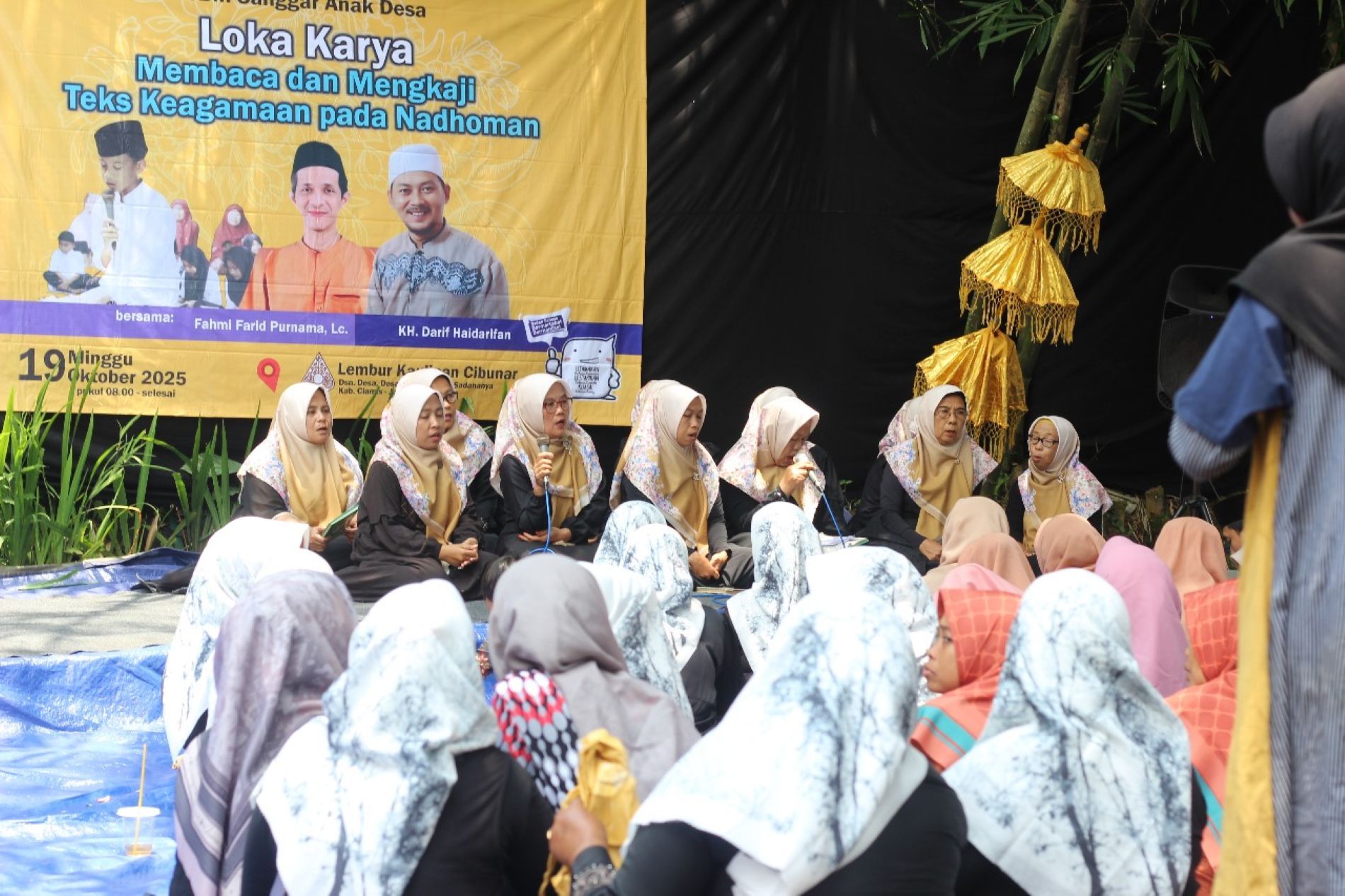 Meskipun suasana terasa santai, jalannya kegiatan berlangsung dengan penuh kesan. Ditambah lagi dengan paparan materi dari dua pembicara, yaitu Fahmy Farid Purnama, Lc., M.Ag. (ahli tafsir Al-Qur’an), dan K.H. Darid Haidarifan (pemimpin Pondok Pesantren Banyulana, Ciamis) membuat acara menjadi lebih bermakna.