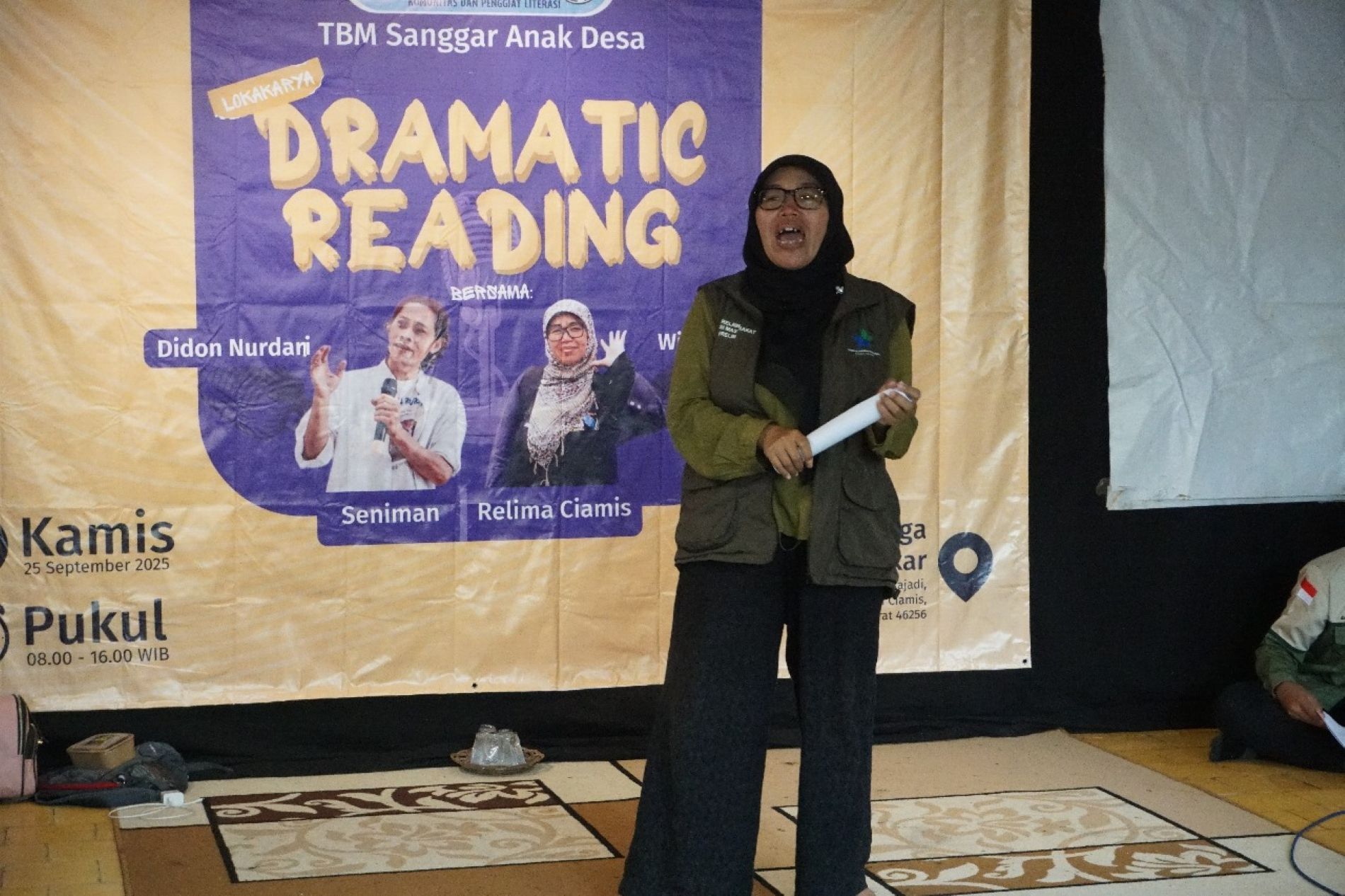 Kegiatan pertama diadakan pada 25 September 2025 dengan acara Loka Karya Dramatic Reading yang diikuti oleh 60 siswa-siswi dari berbagai SMP selevel yang berada di Ciamis. Materi disampaikan oleh Wida Waridah dari Relawan Literasi Masyarakat (Relima) Kabupaten Ciamis, serta Didon Nurdani, seorang seniman berpengalaman, sebagai pembicara.