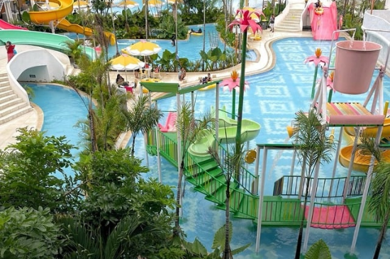 Tropikana Waterpark Depok adalah taman hiburan air keluarga yang mengusung konsep tropis modern dengan nuansa seni. Tempat ini dibuat agar dapat dinikmati oleh semua usia, mulai dari anak-anak hingga dewasa. Seluruh area waterpark dihiasi dengan dekorasi tropis seperti pohon kelapa, payung anyaman, serta kursi santai berwarna lembut yang menciptakan suasana yang tenang dan menyenangkan.