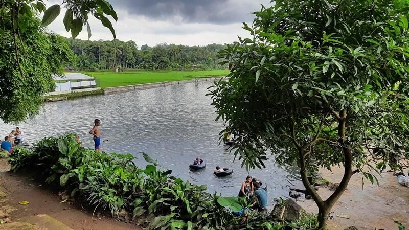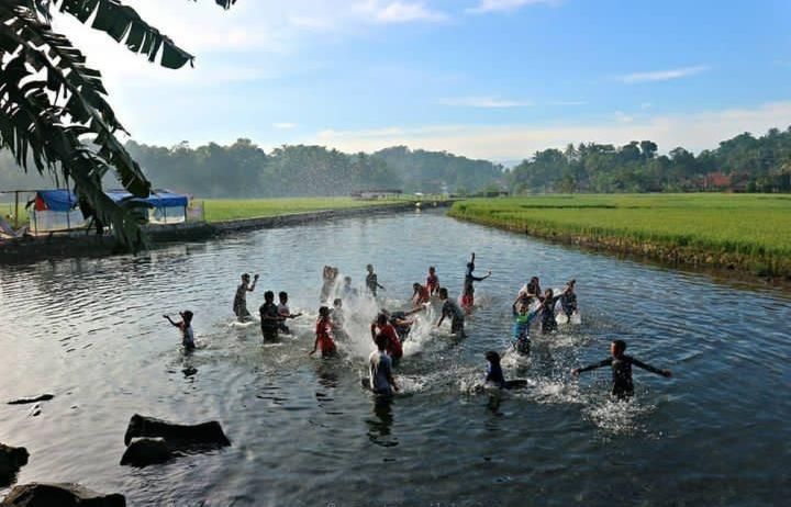 Pengunjung dapat menikmati kejernihan air dan keindahan sawah saat berenang atau bermain air di lokasi ini. Jangan lupa untuk mengambil foto terbaikmu agar bisa dibagikan kepada teman-teman.