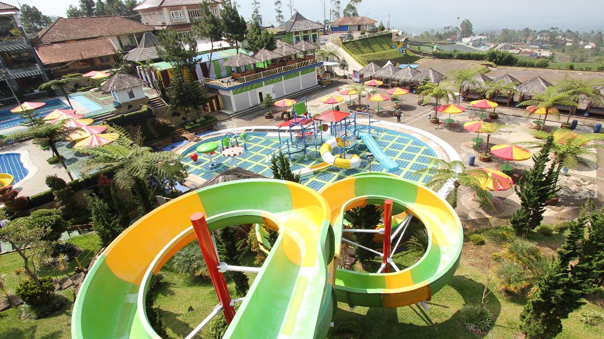 Green Lake View Waterpark menawarkan pengalaman berenang dengan konsep kolam tematik yang estetik, berlatar danau buatan yang menyejukkan mata. Suasananya terasa lebih eksklusif namun tetap ramah untuk anak-anak.