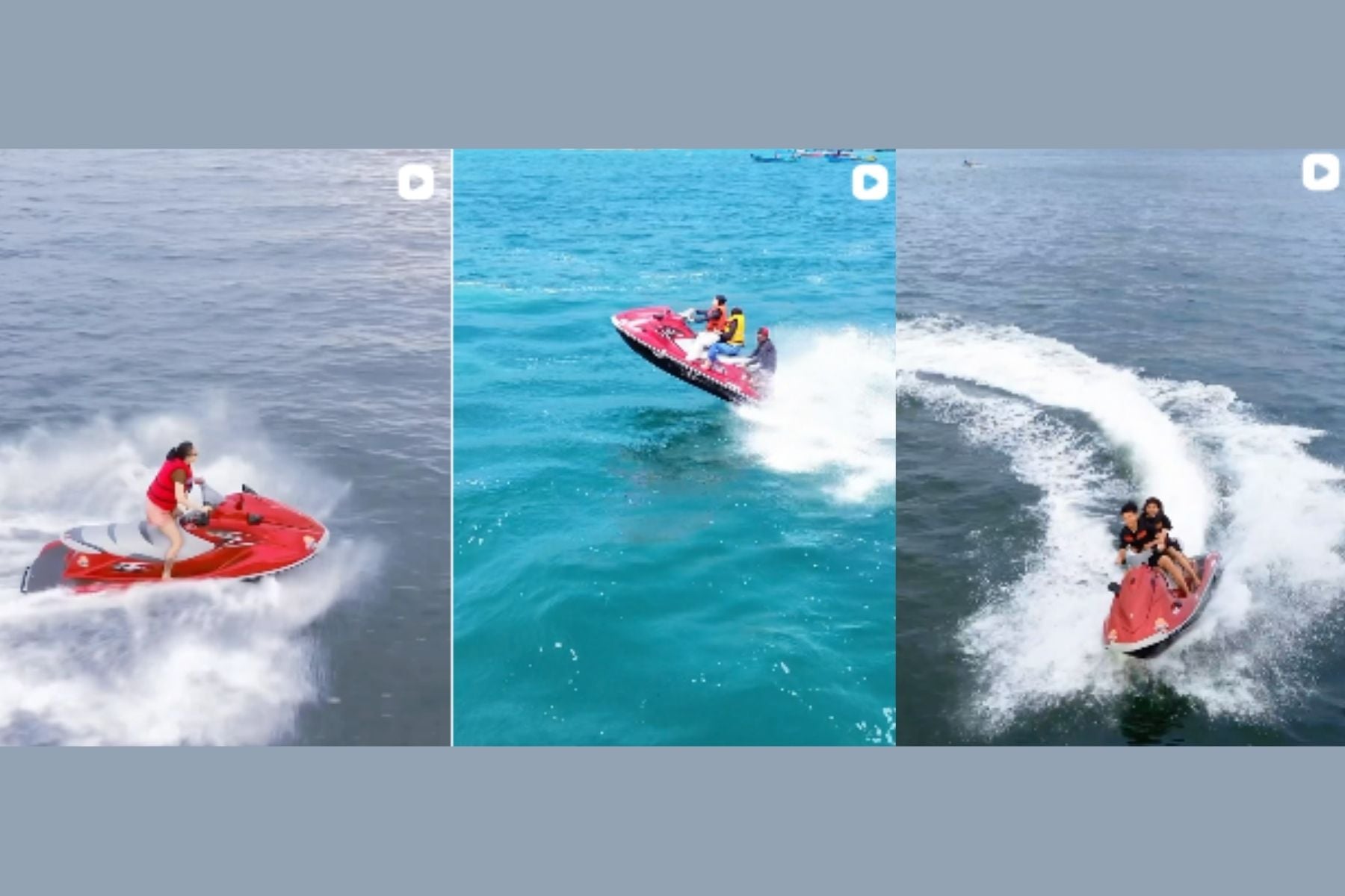 Bagi pencinta kecepatan, jetski menjadi pilihan utama. Sensasi melaju di atas permukaan laut dengan manuver bebas menjadi pengalaman tersendiri. Wisatawan dapat mengendarai jetski secara mandiri, tentu dengan pengawasan instruktur. Harga sewanya umumnya mulai dari sekitar Rp350.000 untuk durasi kurang lebih 15 menit, tergantung lokasi dan waktu kunjungan.