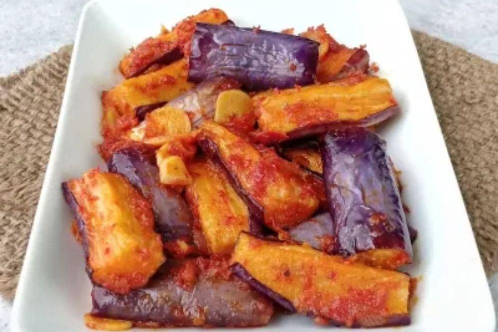5. Kalau sudah, masukkan terong yang sudah digoreng lalu aduk rata.