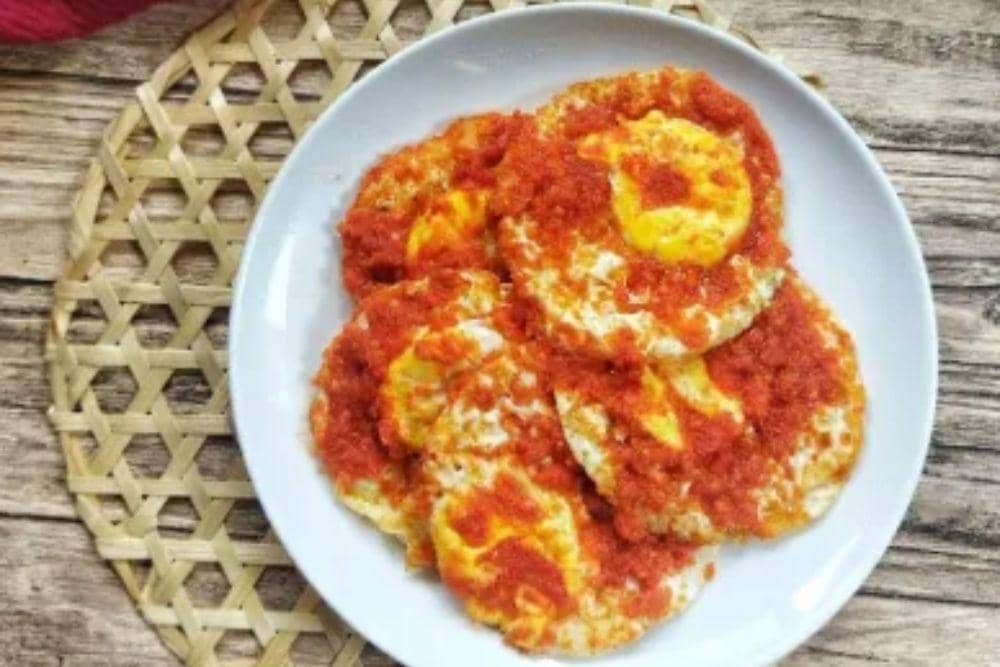 4. Masukkan telur yang sudah diceplok sebelumnya ke dalam bumbu, lalu aduk rata.