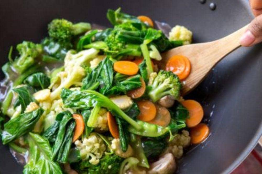 2. Setelah itu, masukkan wortel, brokoli, kembang kol, kemudian tumis sampai layu.