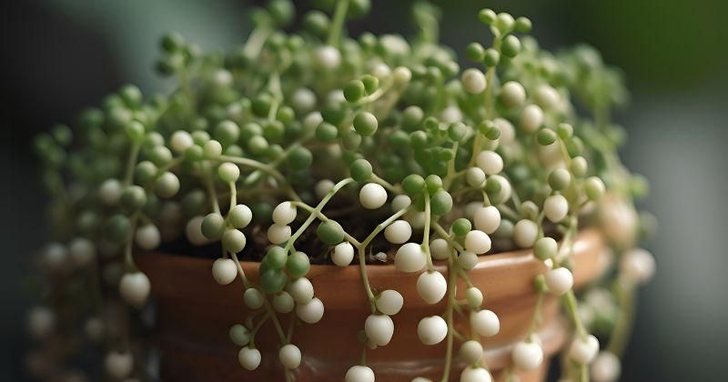 String of pearls adalah sukulen yang populer karena bentuk daunnya yang menyerupai mutiara kecil. Tanaman ini sangat cocok ditempatkan dalam pot gantung. Perawatannya cukup mudah, cukup beri cahaya terang dan siram saat tanah benar-benar kering. -